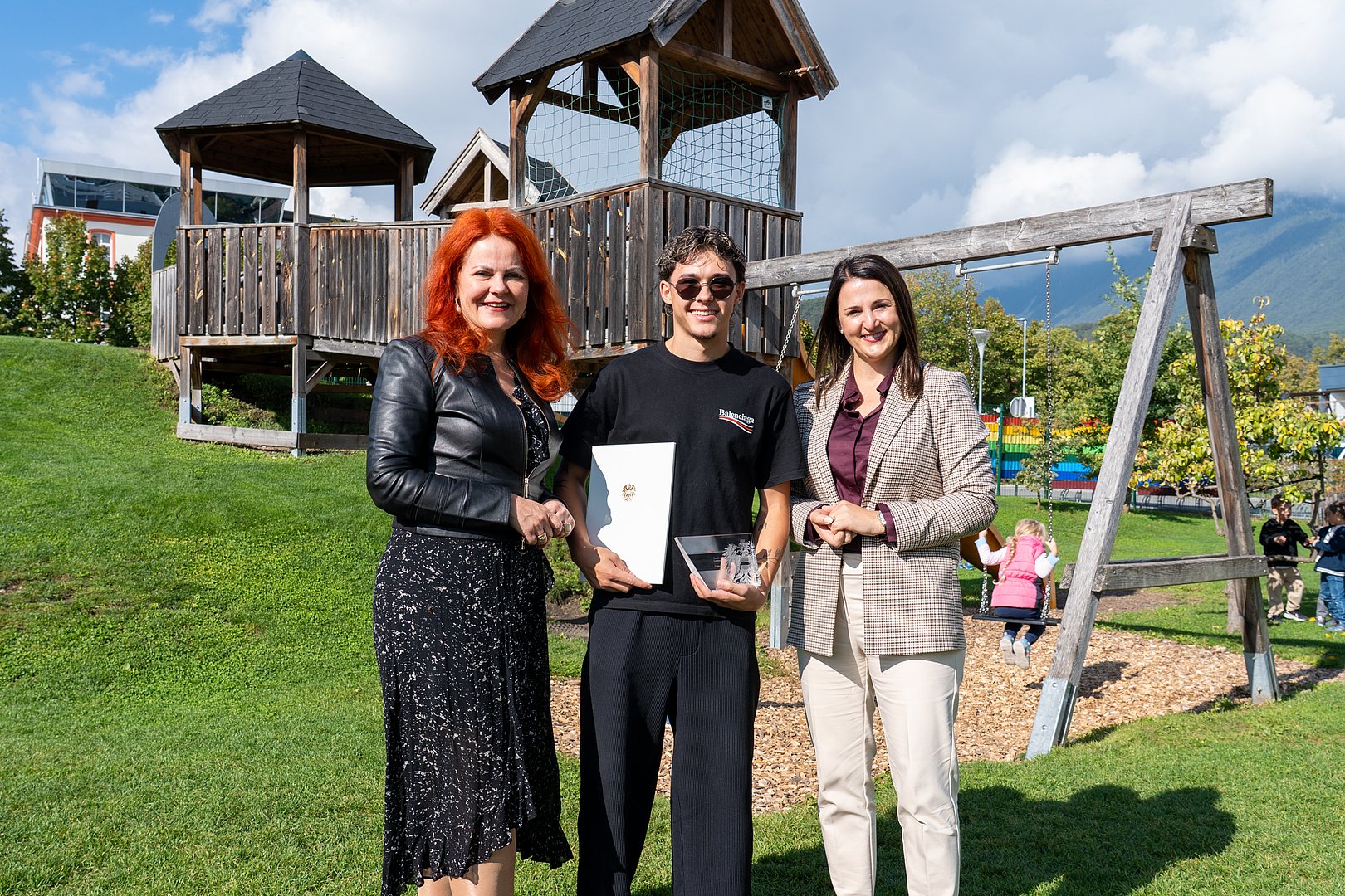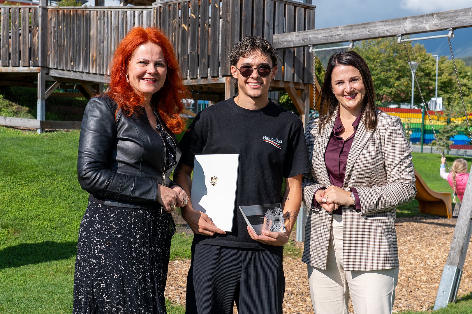 Landesrätinnen Hagele und Mair gratulierten Fabian Bartl aus Telfs zu seiner Auszeichnung