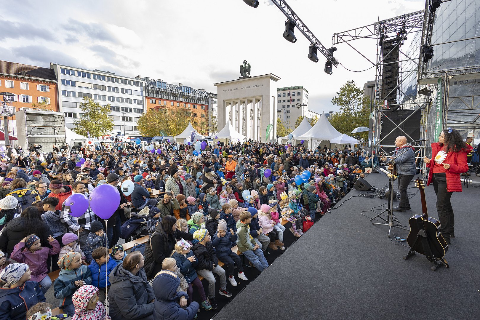 „Euregio Tirol-Südtirol-Trentino. Grenzenlose Kraft. Gemeinsam!“ Unter diesem Motto stand der diesjährige Tag der offenen Tür im Tiroler Landhaus, zu dem Landeshauptmann Anton Mattle und Landtagspräsidentin Sonja Ledl-Rossmann die Bevölkerung einluden. Das Motto wurde anlässlich der zweijährigen Präsidentschaft Tirols in der Euregio Tirol–Südtirol–Trentino gewählt. Und so war die Euregio im und rund um das Landhaus spür- und erlebbar – vom Euregio-Lawinenwarndienst über eine Euregio-Gesundheitsstraße bis hin zu Führungen im Euregio-Info-Point. Zahlreiche weitere Programmpunkte überzeugten die BesucherInnen, die den heutigen Tag der offenen Tür für einen Ausflug zu nutzen. Neben Treffen mit Mitgliedern der Tiroler Landesregierung und des Tiroler Landtags präsentierte sich die Landesverwaltung bei vielfältigen Informations- und Servicestationen. Ein buntes Familienprogramm mit Kinderkonzerten von Bluatschink sorgte für Unterhaltung. Vorführungen des Einsatzkommandos Cobra sowie Begegnungen mit Einsatzorganisationen und dem Österreichischen Bundesheer begeisterten Groß und Klein. Führungen im Landes-Warn- und Lagezentrum, in der Leitstelle Tirol, im Euregio-Info-Point sowie durch die Ausstellung zu Leokadia Justman boten spannende Einblicke. Insgesamt lockte der Tag der offenen Tür, der von der Abteilung Öffentlichkeitsarbeit des Landes organisiert wird, heuer rund 20.000 Besucherinnen und Besucher in das Landhaus.