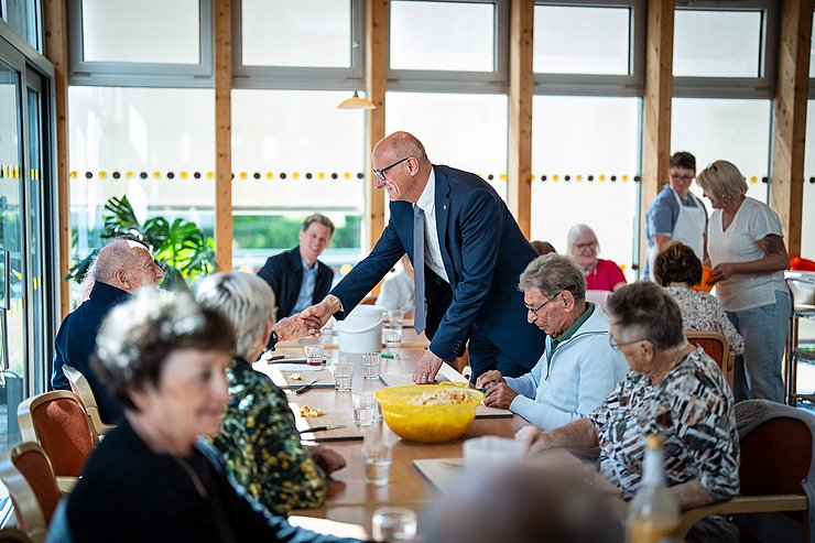 Carina Gartlacher, Leiterin des Hauses Salurn in Wattens, freute sich über den Besuch und betonte: „Das Ehrenamt bringt Menschen zusammen, schafft Beziehungen und eröffnet neue Perspektiven. Jede Unterstützung hilft unseren Bewohnerinnen und Bewohnern, am gesellschaftlichen Leben teilzuhaben. Die Freiwilligenwoche ist für uns eine wertvolle Gelegenheit, neue Freiwillige zu gewinnen und ihnen zu zeigen, wie vielfältig freiwilliges Engagement sein kann.“ In der Pflege Wattens sind laufend Freiwillige im Einsatz – aktuell 37 über die Gemeinde gemeldete sowie weitere über Vereine wie die Vinzenzgemeinschaft, die Schützen und auch ehemalige Mitarbeiterinnen und Mitarbeiter. Sie übernehmen Aktivierungsangebote und soziale Betreuung, organisieren Rikschafahrten für die Bewohnerinnen und Bewohner und unterstützen an Feiertagen sowie Wochenenden bei der Auslieferung von Essen auf Rädern.