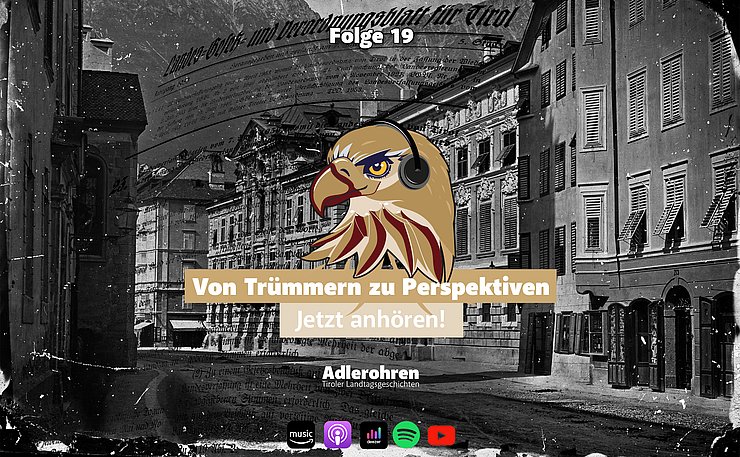 In Folge #19 machen wir eine Zeitreise in ein prägendes Jahrzehnt: 1945 bis 1955. Der Zweite Weltkrieg ist zu Ende, in Innsbruck herrscht Nahrungsmittelknappheit, auf den Straßen patrouillieren alliierte Soldaten und der Tiroler Landtag nimmt wieder seine Arbeit als Volksvertretung auf. Ein Jahrzehnt voller Umwälzungen, aber auch neuen Chancen für Tirol und Österreich.