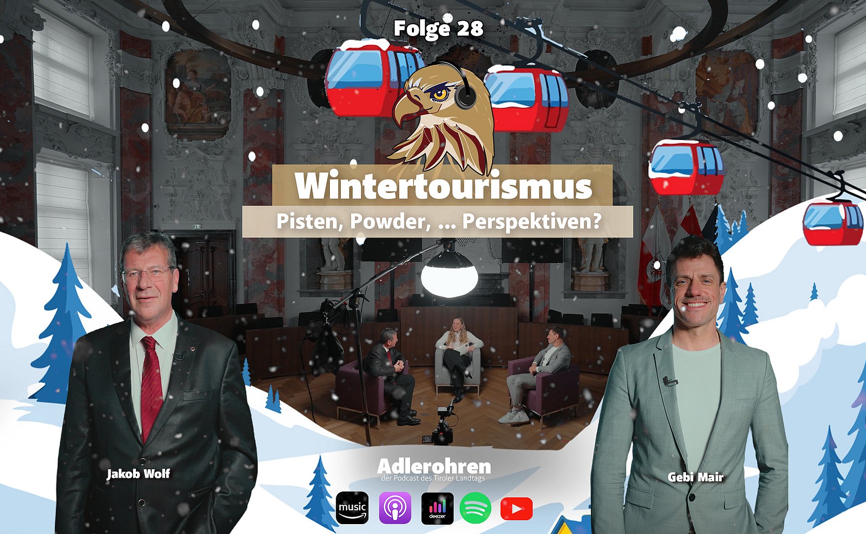 In Folge #28 „Wintertourismus: Pisten, Powder, … Perspektiven?“ rücken wir Tirols touristisches Aushängeschild in den Fokus. Jakob Wolf (VP Tirol) und Gebi Mair (Grüne) diskutieren über Wertschöpfung, Nachhaltigkeit, Arbeitsbedingungen und die Auswirkungen des Klimawandels auf den Wintertourismus. Eine Debatte über Grenzen des Ausbaus, Chancen des Ganzjahrestourismus und die Frage, wie Tourismus für Einheimische verträglich und zukunftsfit gestaltet werden kann.