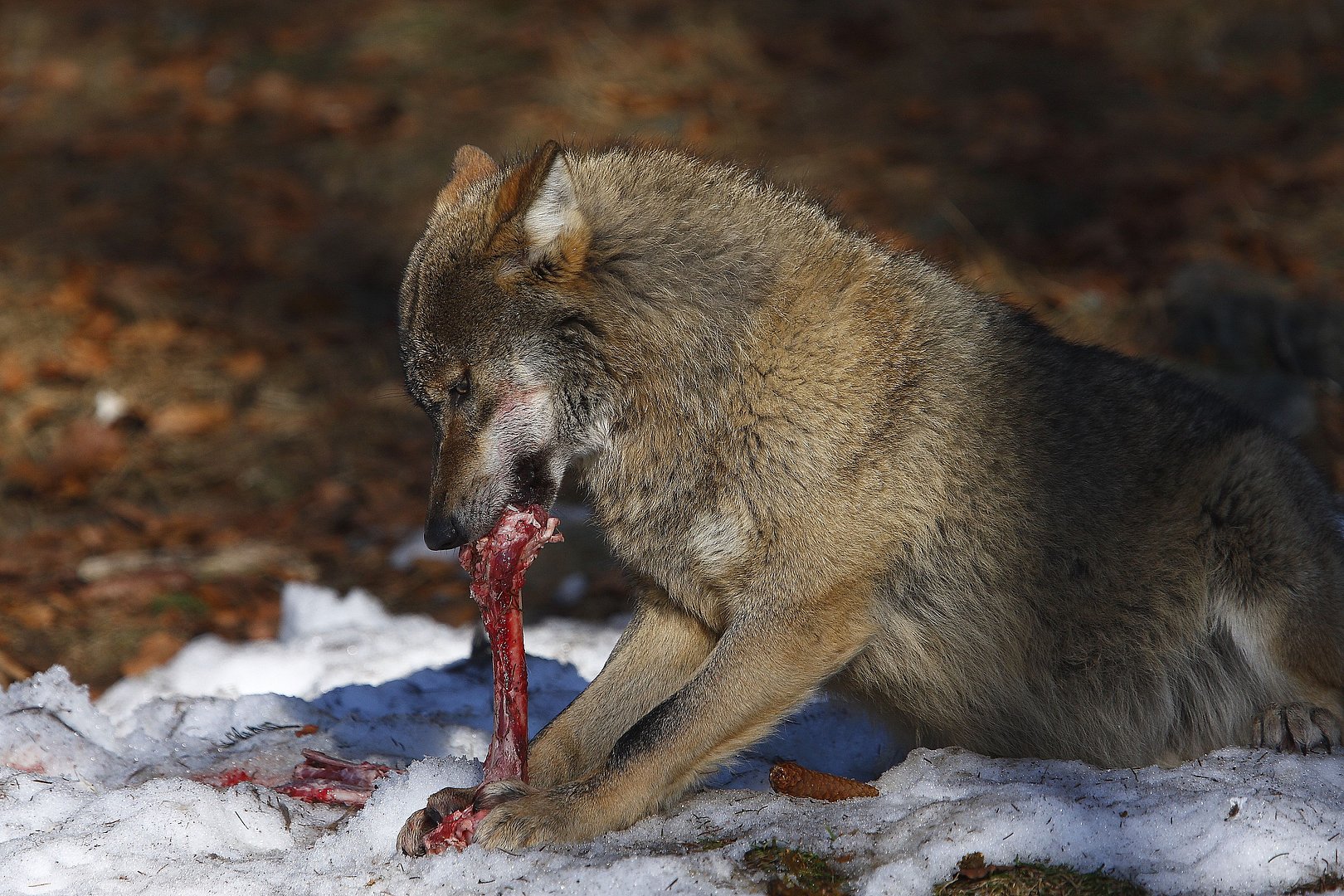 Die Nahrungsverfügbarkeit ist ein wesentlicher Faktor für das Vorkommen und die Dichte einer Wolfspopulation. Österreich hat eine der höchsten Schalenwilddichten in Europa und somit eine sehr gute Nahrungsgrundlage an Wildtieren. In freier Natur kommt es durchaus vor, dass ein Wolf über längere Zeit keine Beute macht. Jedoch ist er dann auch imstande auf einmal bis zu 10 kg Fleisch zu verzehren. Ein erwachsener Wolf benötigt täglich etwa 4 kg Beute (Fleisch, Haut, Knochen). Oft wird die Frage gestellt, wieviel Schalenwild ein Wolf pro Jahr benötigt. Übers Jahr gerechnet kommt man bei 4 kg Beute pro Wolf auf etwa 1500 kg. Laut einer BOKU Studie zu den Auswirkungen von rückkehrenden Wölfen (2018) wären das grob geschätzt 130 Rehe oder 35 Stück Rotwild (aufgebrochen, Durchschnitt aller Altersklassen). Wotschikowsky (2006) berechnete den ungefähren Nahrungsbedarf eines Wolfes auf Grundlage der Nahrungsanalysen in der deutschen Lausitz (Sachsen und Brandenburg). Unter Berücksichtigung neuerer Daten aus der Nahrungszusammensetzung ergibt sich, dass ein Wolf im Jahr etwa 67 Stück Rehwild, neun Stück Rotwild und 16 Stück Schwarzwild erlegt. Wenn man diesen Wildbedarf auf ein Rudel und die dort durchschnittliche Reviergröße von 25.000 ha umlegt, kann man berechnen, wieviel Stück Schalenwild ein Rudel pro 100 ha jährlich erlegt: 1,6 Rehe, 0,22 Stück Rotwild und 0,4 Wildschweine. Das sind 2,22 Stück Schalenwild pro 100 ha. Diese Erkenntnisse weisen darauf hin, dass die Nutzungsrate der Wölfe in der Regel unter jener durch nachhaltige Bejagung liegt. Die genaue Berechnung können Sie im Artikel Wölfe und Schalenwild nachlesen.
