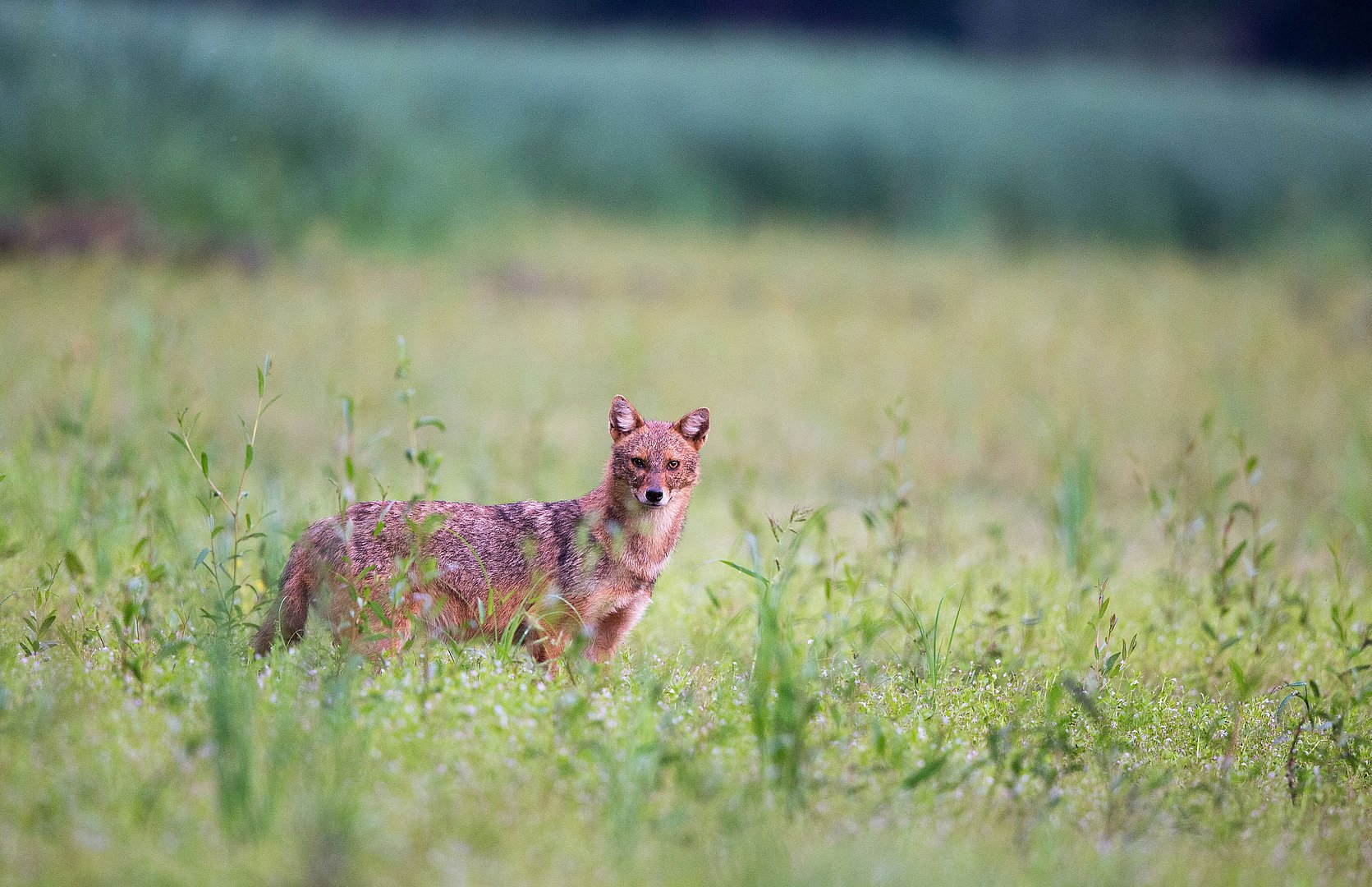 Die Geschlechtsreife von Goldschakalen tritt im Alter von einem Jahr ein. In Europa findet die Paarungszeit im Januar und Februar statt. Nach einer Tragzeit von durchschnittlich 62 Tagen bringt die Fähe zwischen Ende April und Anfang Mai drei bis fünf Jungtiere zur Welt. Die Aufzucht der Jungtiere erfolgt oft in verlassenen Fuchs- oder Dachsbauten sowie im dichten Schilf oder im Dickicht von Sträuchern. Die Jungtiere werden sechs bis acht Wochen gesäugt und bleiben bis zum nächsten Frühjahr bei den Eltern. Bei Goldschakalen kommt es vor, dass ein Jungtier bei den Eltern bleibt, um bei der Aufzucht der nächsten Generation zu helfen.