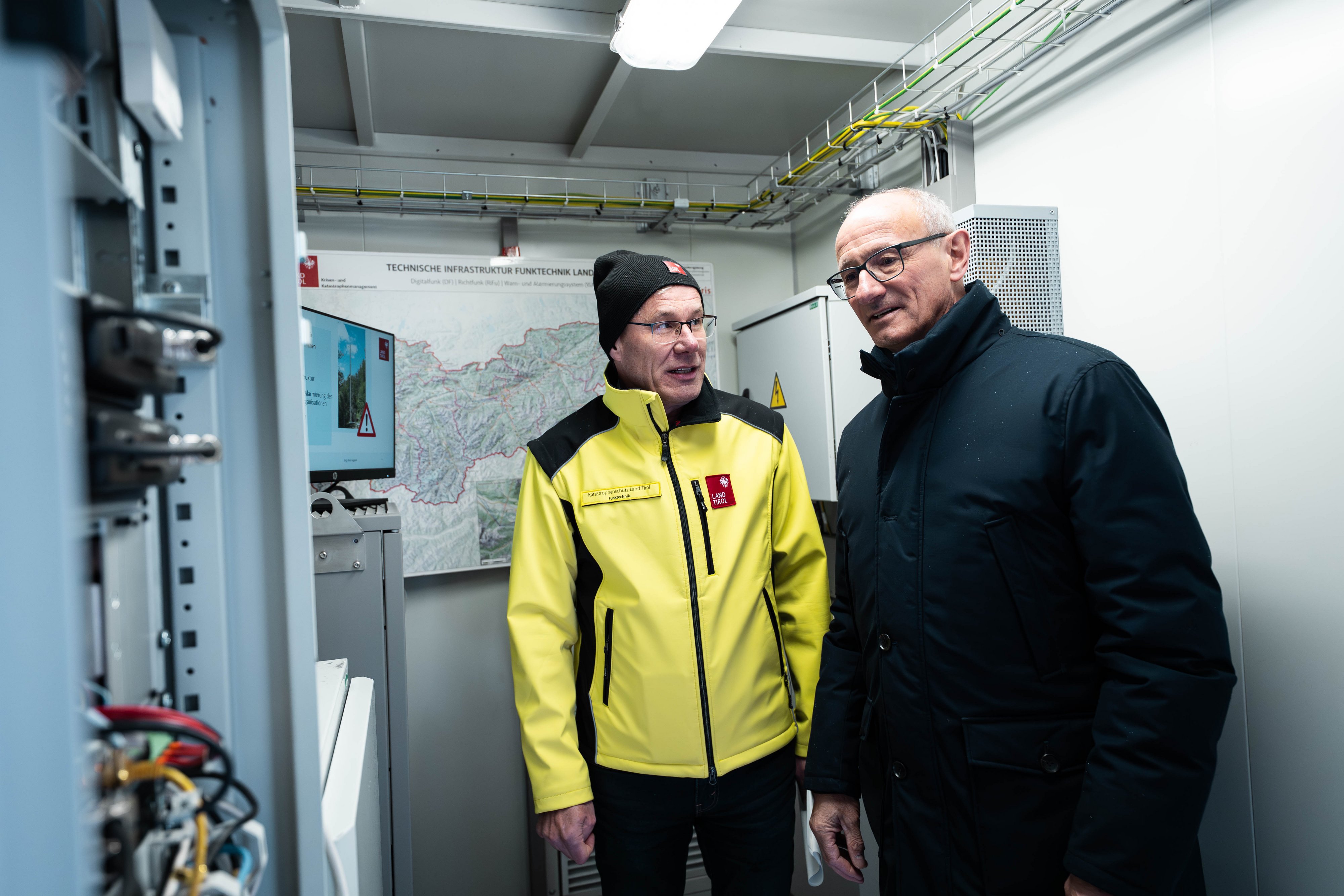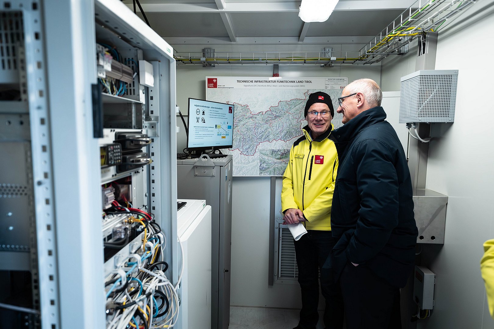 Das tirolweite Digitalfunknetz feiert heuer sein 20-jähriges Bestehen. Aus diesem Anlass machte sich Landeshauptmann Anton Mattle beim Digitalfunkmasten in Oberperfuss (Bezirk Innsbruck-Land) ein Bild von der leistungsfähigen und ausfallsicheren Infrastruktur, die seit zwei Jahrzehnten die sichere Kommunikation der Behörden und Einsatzorganisationen in Tirol gewährleistet. Gleichzeitig besichtigt Sicherheitslandesrätin Astrid Mair die Technikräume im Landhaus, wo das Netzmonitoring und die Alarmüberwachung für die Standortinfrastruktur, das Landesrichtfunknetz sowie das Warn- und Alarmierungssystem erfolgt. Sämtliche Funkgeräte werden in der zentralen Endgeräteverwaltung erfasst und im System freigeschaltet.