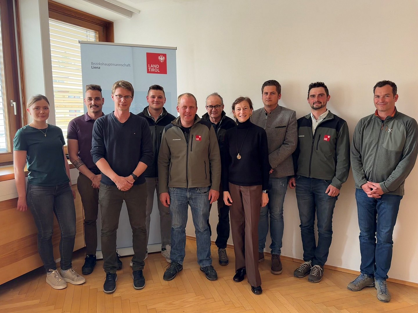 Am 13.04.2026 wurden in der Bezirkshauptmannschaft vier neue Gemeindewaldaufseher für die Waldbetreuungsgebiete Matrei i.O., Innervillgraten, Sillian/Heinfels sowie Untertilliach von der Bezirkshauptfrau Dr. Bettina Heinricher angelobt. Die Hilfsorgane unterstützen ua. die Behörde bei der Überwachung der Einhaltung der Tiroler Waldordnung und des Forstgesetzes 1975. Sie führen im öffentlichen Interesse liegende forstliche Betreuungsmaßnahmen durch, wirken bei der Förderung sowie der Beratung in forstlichen Angelegenheiten mit. Der Gemeindewaldaufseher ist darüber hinaus für die Hilfestellung von forstlichen Schäden aufgrund von Naturgefahren zuständig und betreut die Walddatenbank.