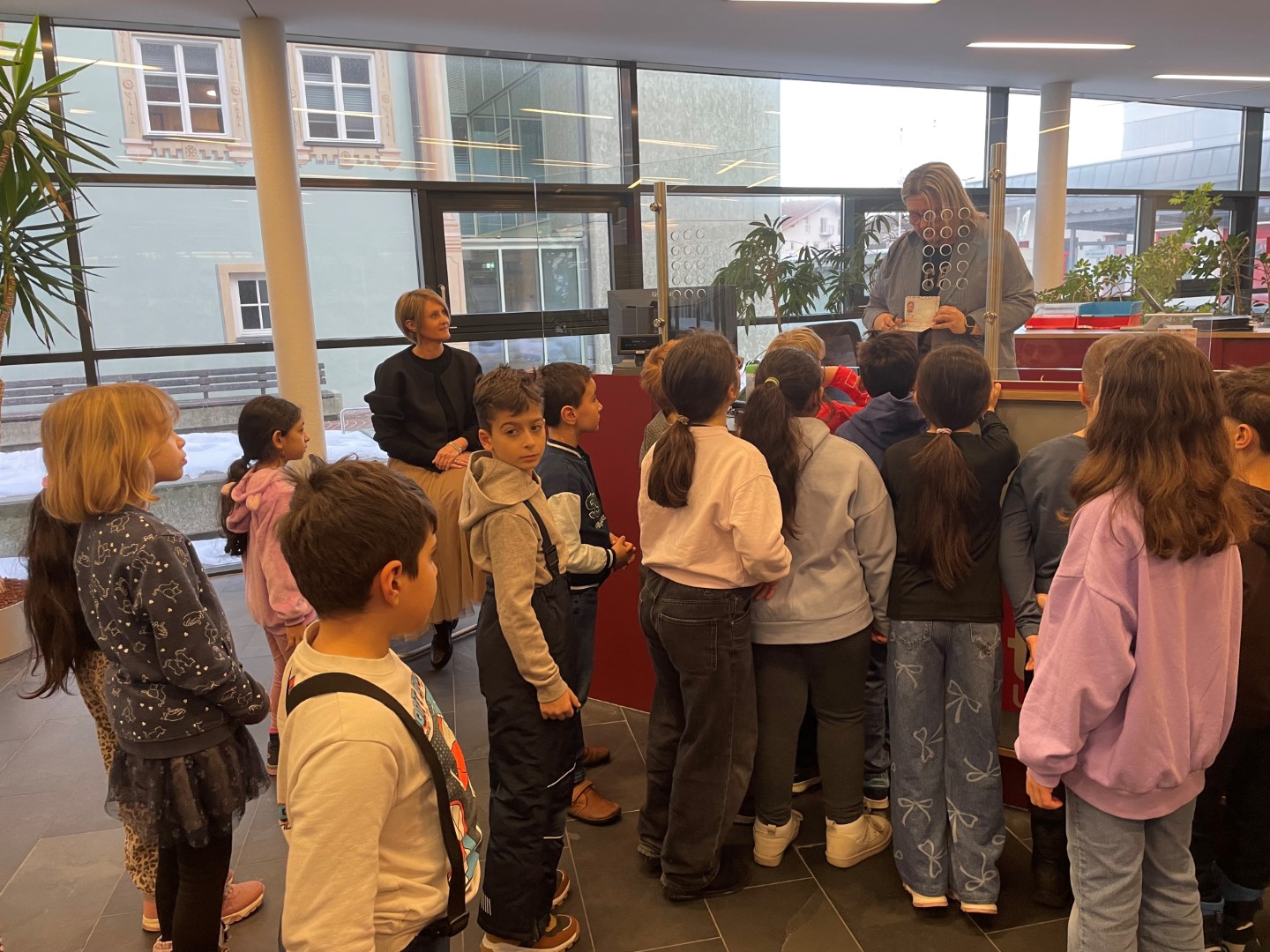 Wir haben das Bürgerservice angeschaut und haben Fingerabdrücke gemacht. Die Ausdrucke durften wir als Erinnerung mitnehmen. Danach hat uns Herr Schautzgy über Zivil- und Katastrophenschutz informiert und wir haben gefunkt. Unsere Funknamen waren „Löwe“ und „Katze“.