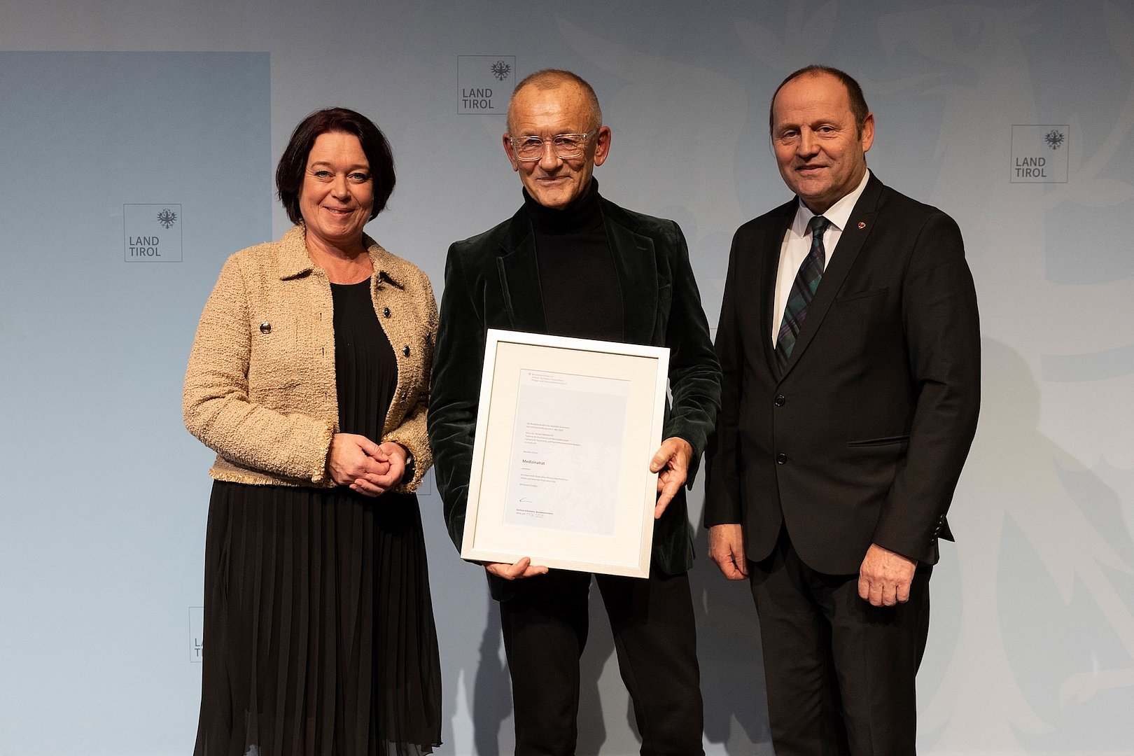 Zu den ausgezeichneten Persönlichkeiten gehört der Tiroler Schriftsteller und Dramaturg Felix Mitterer, der mit dem Österreichischen Ehrenkreuz für Wissenschaft und Kunst I. Klasse bedacht wurde. Er zählt zu den bedeutendsten Dramatikern Österreichs, dessen literarische Stimme das kulturelle Gewissen Tirols schärfte. Sein vielschichtiges Werk – stets kontroversen Themen und aufwühlenden Schicksalen verpflichtet – lässt sich größtenteils dem Genre des „Kritischen Volksstücks“ zurechnen. Das Große Silberne Ehrenzeichen für Verdienste um die Republik Österreich erhielt Roland Psenner, Präsident von Eurac Research – ein internationales Forschungsinstitut in Bozen (Südtirol). Psenner rückte die Auswirkungen der Globalisierung auf heimische Gewässer und alpine Ökosysteme ins Zentrum seiner Arbeiten. Er gilt als einer der meistzitierten Forscher seines Faches und Förderer einer umfassenden Wissenschaftskommunikation.