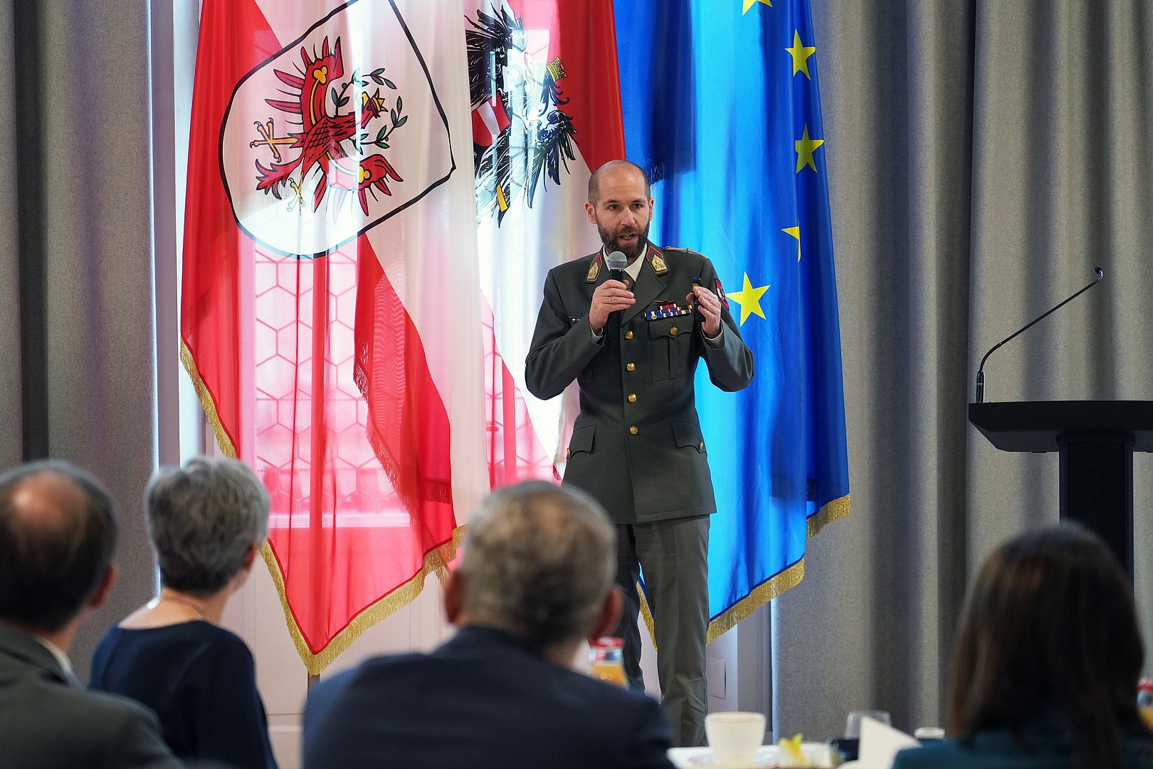 Teil des heurigen Sicherheitsbrunches war zudem ein Fachvortrag von Daniel Hikes-Wurm von der Generaldirektion Verteidigungspolitik im Bundeministerium für Landesverteidigung (BMLV). Er gab einen Einblick in die strategischen Abhängigkeiten Österreichs bzw. der EU.