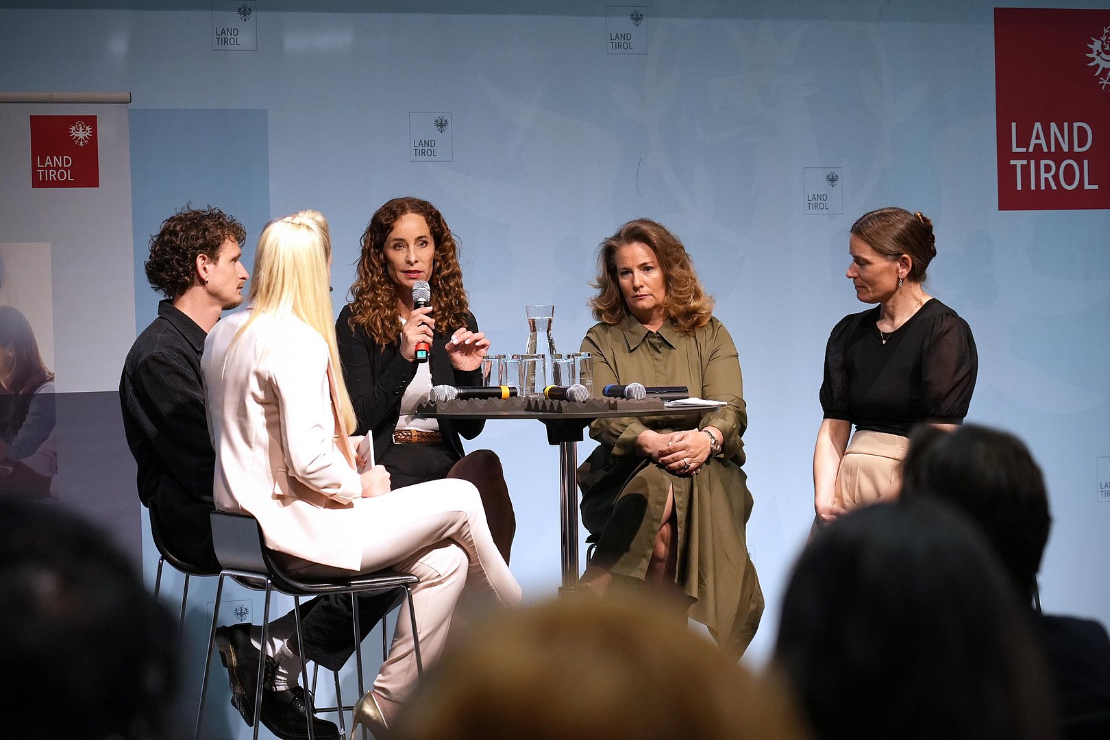 Im Anschluss wurden die Inhalte im Rahmen einer Gesprächsrunde diskutiert, an der neben LRin Pawlata auch Sabine Ludwig (Medizinische Universität Innsbruck), Jakob Egger (Verein Mannsbilder) und Rebecca Kirchbaumer (WK Tirol) teilnahmen.