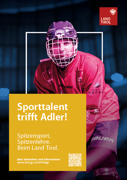 Unter dem Motto „Sporttalent trifft Adler“ spricht das Land Tirol bewusst junge Menschen an, eine Lehre mit Sport beim Land Tirol zu absolvieren. Interessierte Jugendliche aus ganz Tirol haben die Möglichkeit, sich für eine Lehre beim Land Tirol zu bewerben: www.tirol.gv.at/lehrlinge. Dort finden sich auch Informationen zur Lehre mit Sport sowie alles Wissenswerte rund um die Lehre beim Land Tirol.