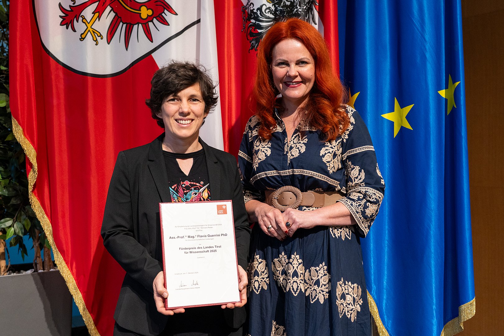 Auf Vorschlag von Michaela Ralser geht der mit 4.000 Euro dotierte Förderpreis des Landes Tirol für Wissenschaft in diesem Jahr an Flavia Guerrini, die ebenfalls am Institut für Erziehungswissenschaft forscht. Aktuelle Arbeitsschwerpunkte sind die Geschichte der Heimerziehung und Jugendfürsorge – aktuell am Beispiel der Bundesanstalt für Erziehungsbedürftige in Wiener Neudorf – und Erfahrungen der Kinder von Besatzungssoldaten.