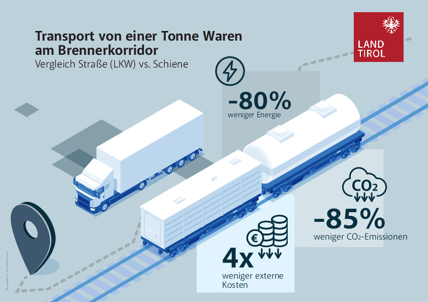 „Bei dem von den Transportunternehmen gezahlten Preis hat die Schiene einen Wettbewerbsnachteil gegenüber dem Straßentransport. Dabei wird nämlich weitgehend außer Acht gelassen, welche Kosten für die Allgemeinheit anfallen. Diese Kosten sollte eigentlich der Verursacher – in diesem Fall der Güterverkehr auf der Straße – tragen“, sagt Verkehrslandesrat René Zumtobel: „Gäbe es Kostenwahrheit und damit wirtschaftliche Fairness zwischen Straße und Schiene, müssten sich die mehr als vierfach höheren externen Kosten auf der Straße im Transportpreis widerspiegeln.“