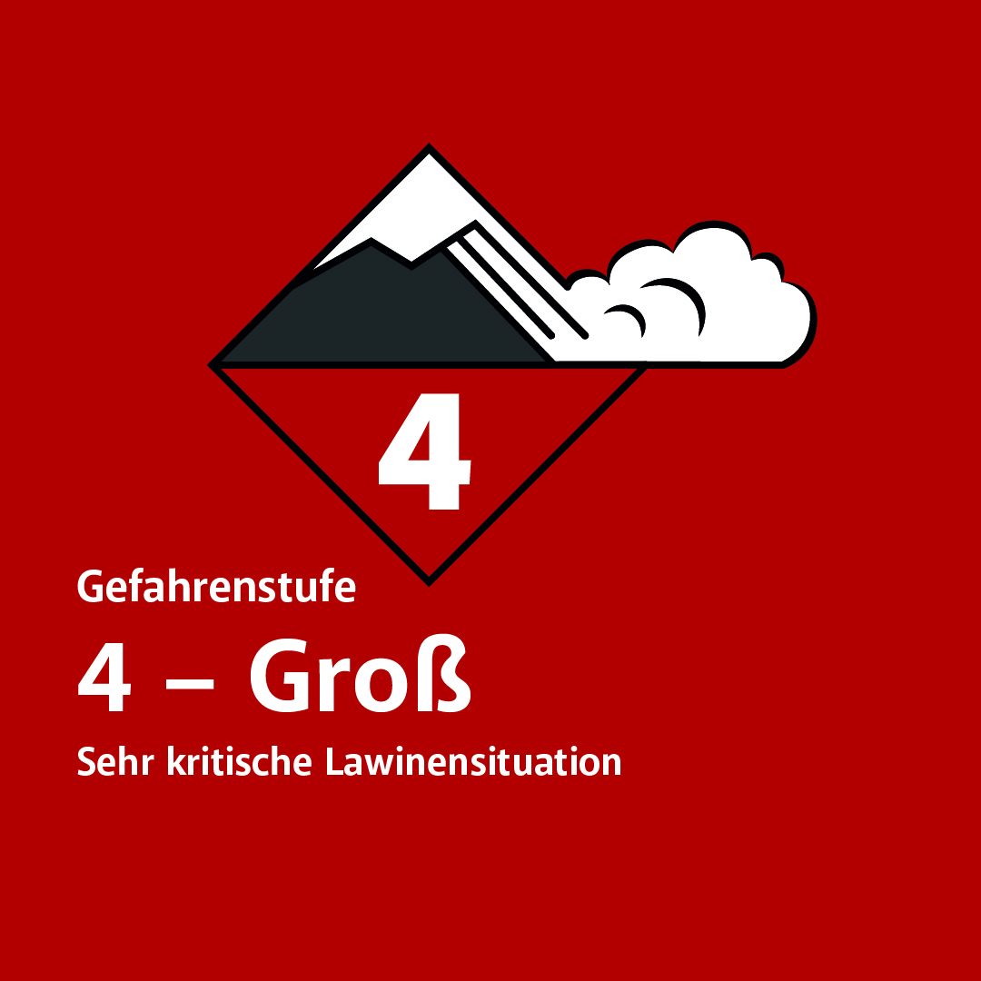 In den Gebieten mit Lawinengefahrenstufe 3 und 4 gilt: Lawinen können bereits durch einzelne WintersportlerInnen leicht ausgelöst werden. Auch Fernauslösungen sind zu erwarten. Die Gefahrenstellen sind weit verbreitet und kaum zu erkennen. Aufgrund des Neuschnees sind in den Gebieten mit Gefahrenstufe 4 große Lawinen möglich.