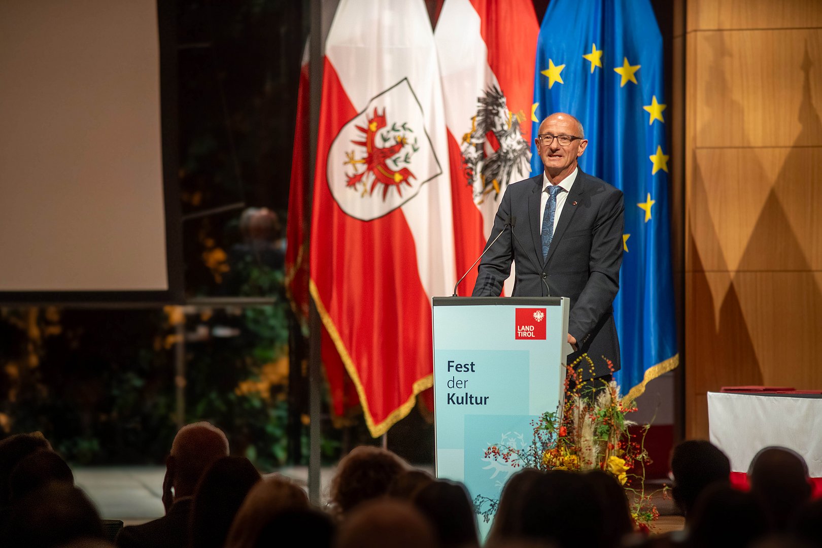 „Ich freue mich sehr, dass heuer auch der Tiroler Volkskulturpreis erstmals im Rahmen des Fests der Kultur verliehen wird. Denn dieser Abend soll die große Bandbreite des kulturellen Lebens in Tirol – von der zeitgenössischen Kunst und Kultur bis zur Traditionskultur – sichtbar machen“, betonte der Landeshauptmann.