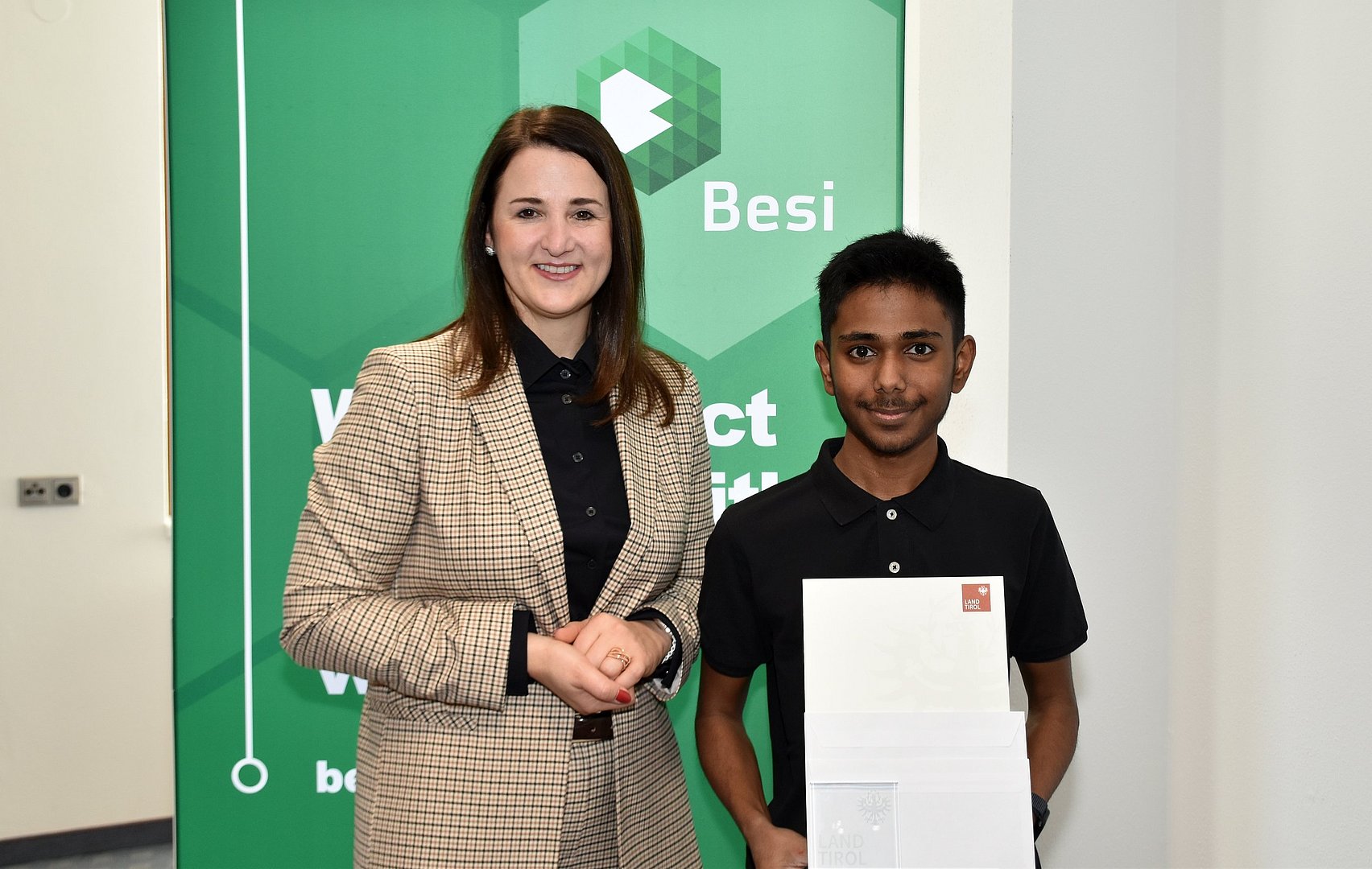 Der „Lehrling des Monats Jänner 2026“ kommt diesmal aus dem Tiroler Unterland: Matteo Oberladstätter stammt aus Kramsach und absolviert eine Lehre zum Informationstechnologen-Systemtechnik im vierten Lehrjahr bei der Besi Austria GmbH in Radfeld. Er bekam die Auszeichnung bei einer Feier im Betrieb von Arbeits- und Jugendlandesrätin Astrid Mair persönlich überreicht. Die Auszeichnung wurde auch filmisch begleitet und steht auf dem YouTube-Kanal des Landes zur Verfügung: https://youtu.be/XBTihd92jjo.