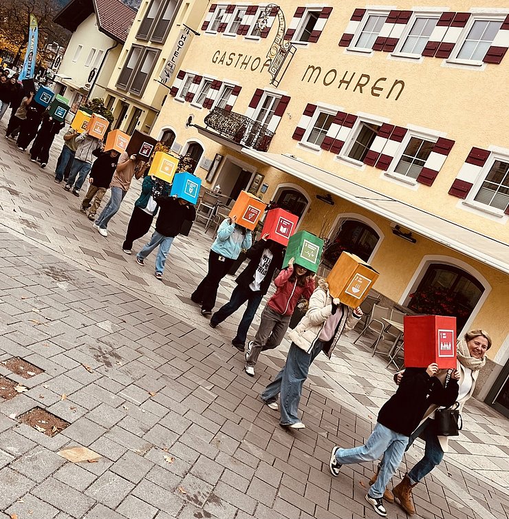 Mit ihren Zielen im Kopf und den selbst gestalteten Boxen in der Hand marschierten die Klassen anschließend gemeinsam durch den Untermarkt. Der bunte Zug der jungen Weltveränderer machte neugierig und sorgte bei Passantinnen und Passanten für Aufsehen.