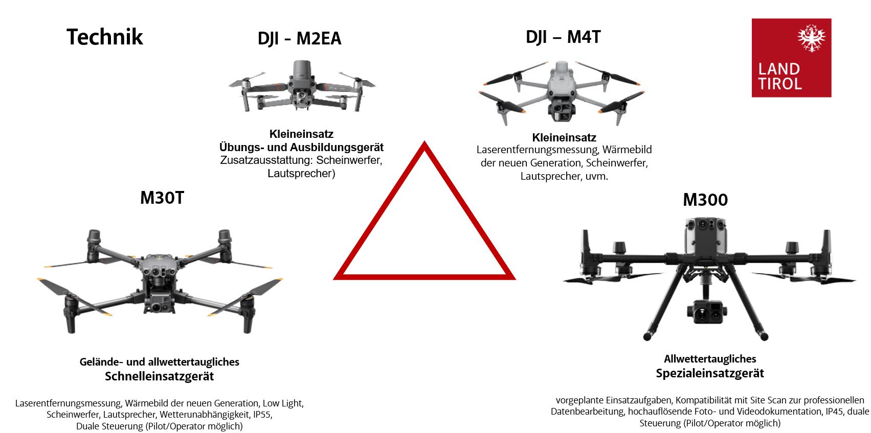 Vier hochmoderne und wetterfeste Drohnen stehen im Dienst des Landes-Warn- und Lagezentrum Tirol, die in verschiedenen Bereichen zum Einsatz kommen.