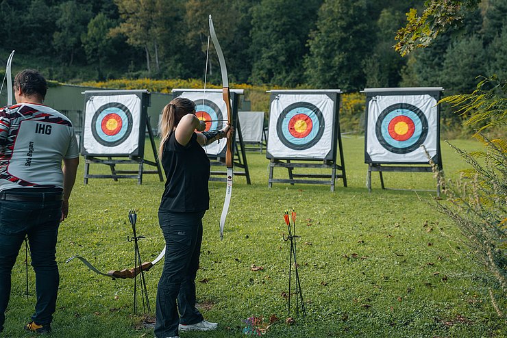 Die erste Hälfte der Zeit wurde auf fixe Zielscheiben geschossen, um ein Gefühl für die Zugspannung, das Flugverhalten der Pfeile und Treffsicherheit zu bekommen (10m-20m Entfernung). In der zweiten Hälfte wurde dann auf anspruchsvolle Tiernachbildungen gewechselt, welche vom kleinen Hasen (10m Entfernung) bis zum großen Bären oder Hirsch (50-60m Entfernung) reichten. Hier konnte man frei wählen, welcher Herausforderung man sich annahm, was durchaus den Wettbewerbsgeist untereinander weckte.