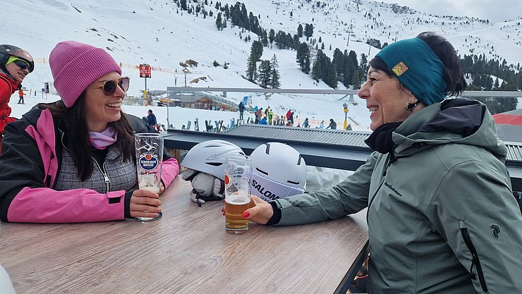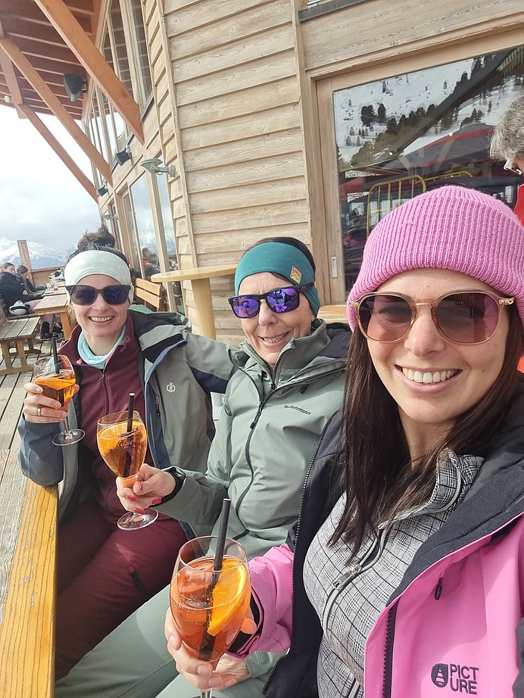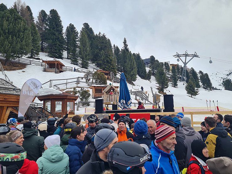 Zum gemütlichen Ausklang des Skitages legte die Gruppe noch einen Zwischenstopp bei der Tanzalm unterhalb der Mittelstation ein, wo bei DJ-Musik noch einmal ordentlich Stimmung aufkam. Den endgültigen Abschluss fand der Tag schließlich beim Après-Ski in der Schirmbar bei der Talstation.