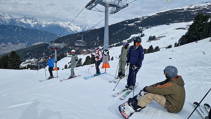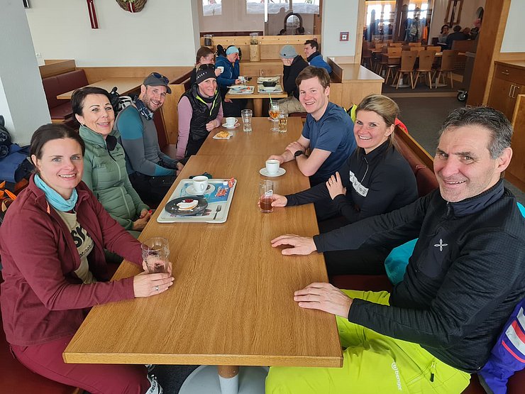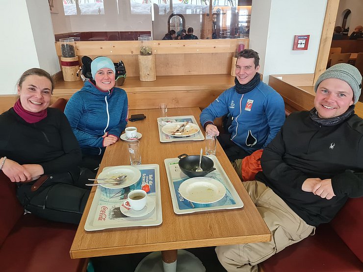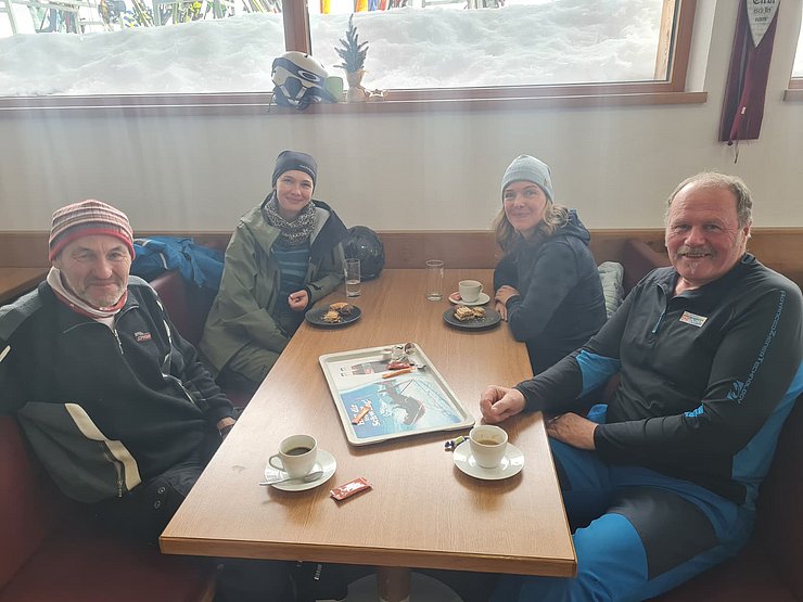 Nach dem gemeinsamen Mittagessen nutzte der Großteil der Gruppe die Gelegenheit, noch einmal auf die Pisten zu gehen. Durch die leicht steigenden Temperaturen wurden die Schneeverhältnisse besser und die Abfahrten ließen sich angenehm fahren.