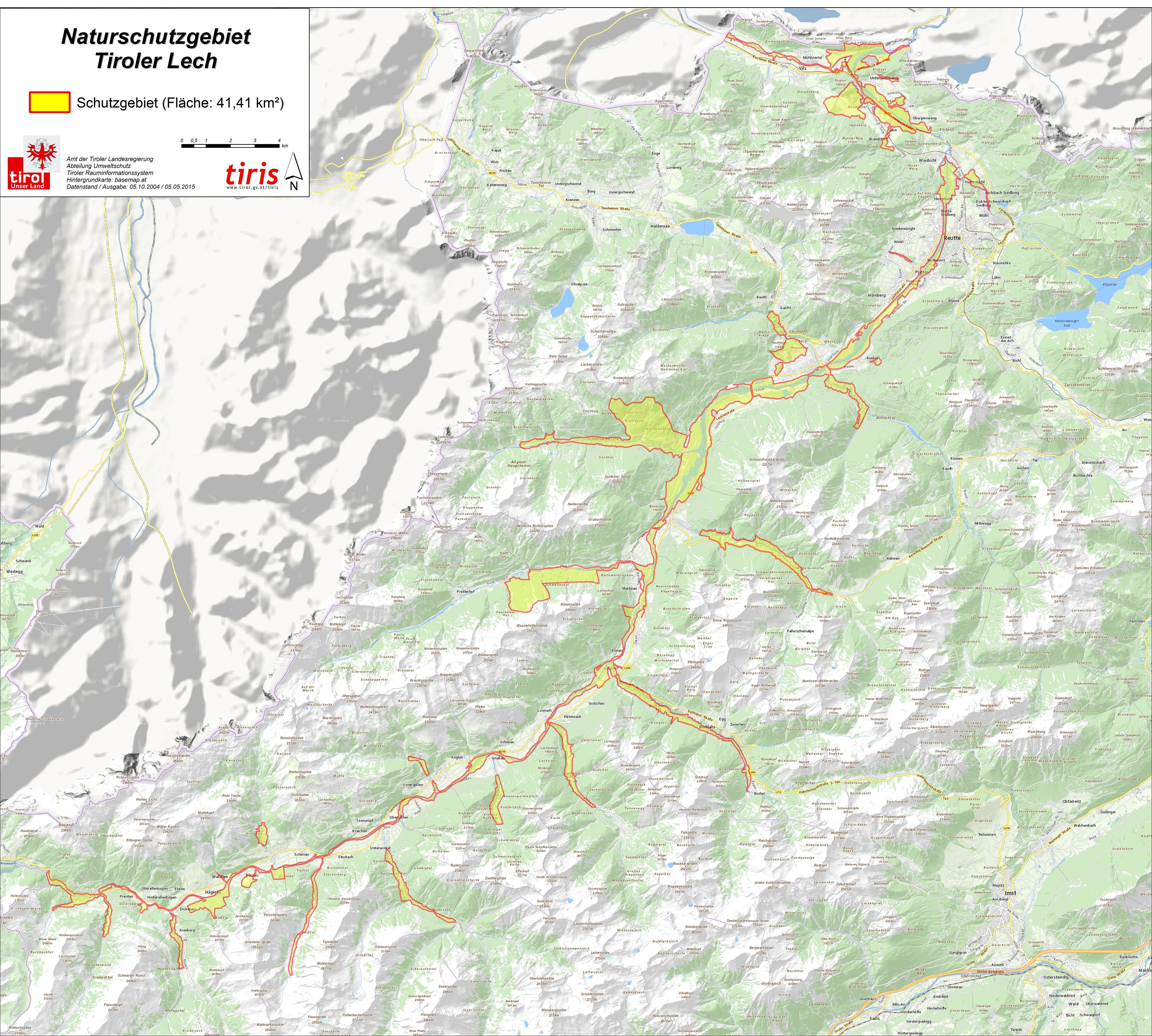 Naturpark, Natura2000 und Naturschutzgebiet Tiroler Lech (ÖK50)
