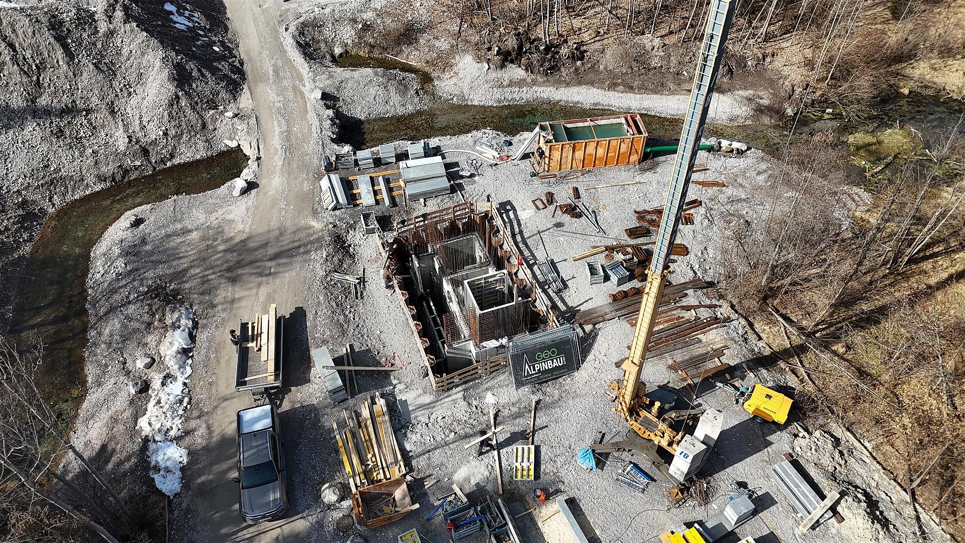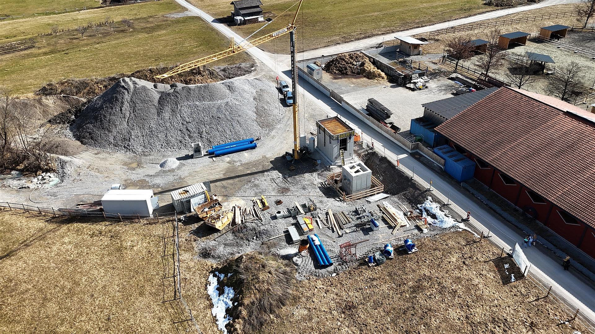Insgesamt werden in diesem Bauabschnitt ca. 1500 m Betonrohre mit einem Durchmesser von 60cm bis 100cm und ca. 800 m Drainagerohre verlegt. Für den Erddamm werden ca. 25.000 m3 Dammschüttmaterial benötigt.